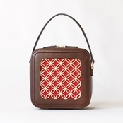 花組子ミニバッグ ブラウン×レッド(ショルダー付)